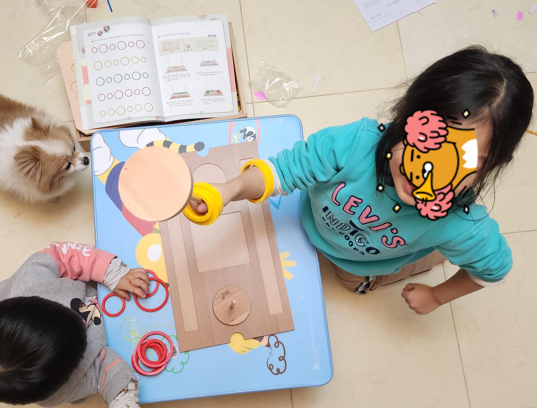 첫째가 중간에 있던 고리 던지기 놀이를 하고 싶다고 해서 같이 했다.
