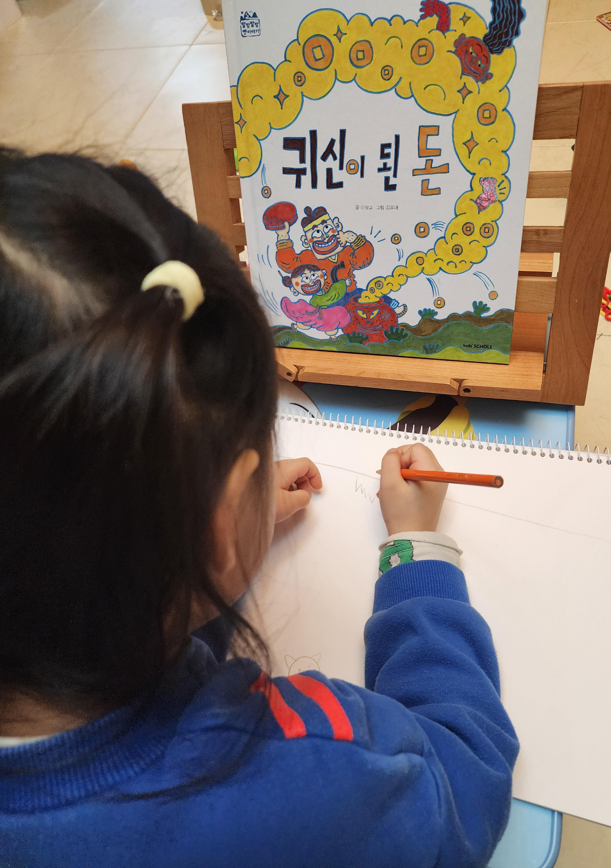 귀신을 그려보자고 스케치북을 가져왔다,