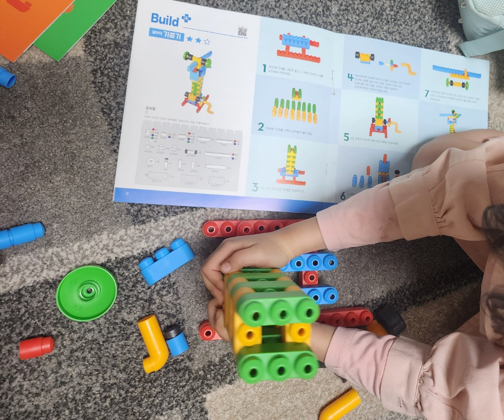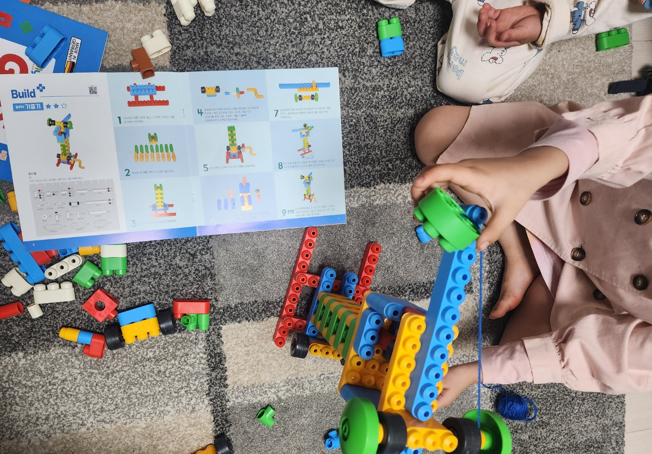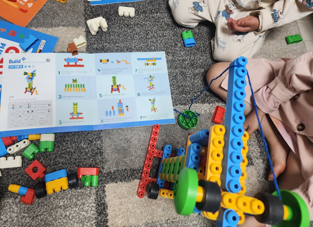 블록놀이를 하면서 '3개짜리 초록블록 10개 찾아보자' 하면서 둘째의 숫자공부도 같이 하게 되는 것 같다.