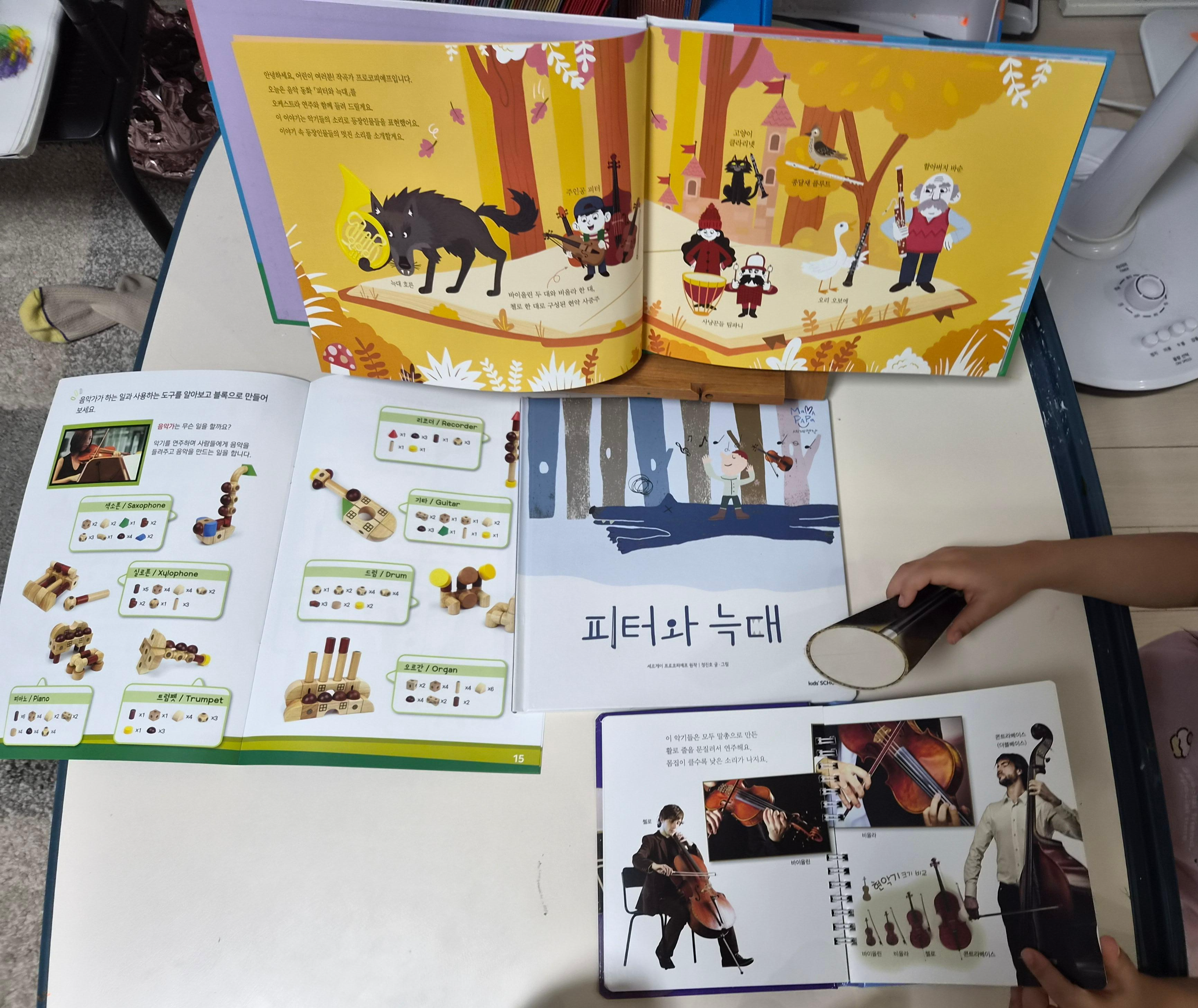 마마파파의 피터와 늑대에는 그림에 실제 사진으로 인물 옆에 놓여져 있다.