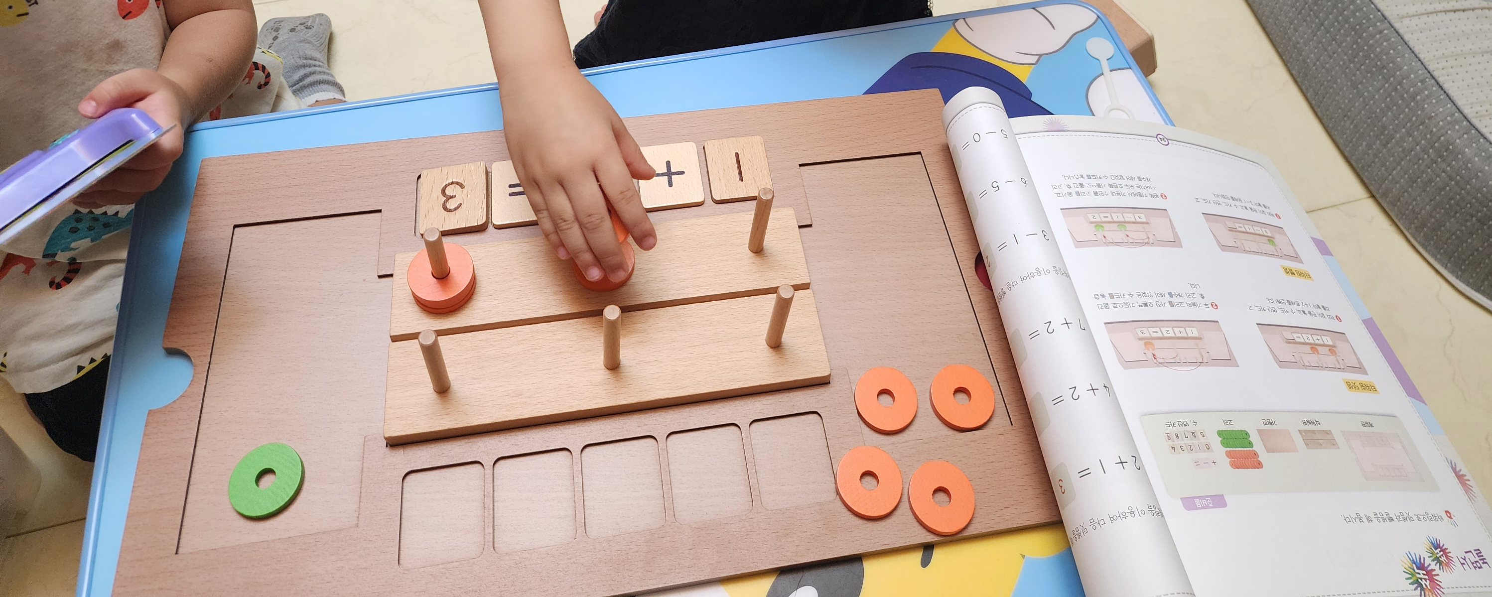 숫자에 맞춰 고리를 끼워 넣고, 더하기는 모든 고리를 끝으로 보내 답이 나오는 과정을 보게 된다.