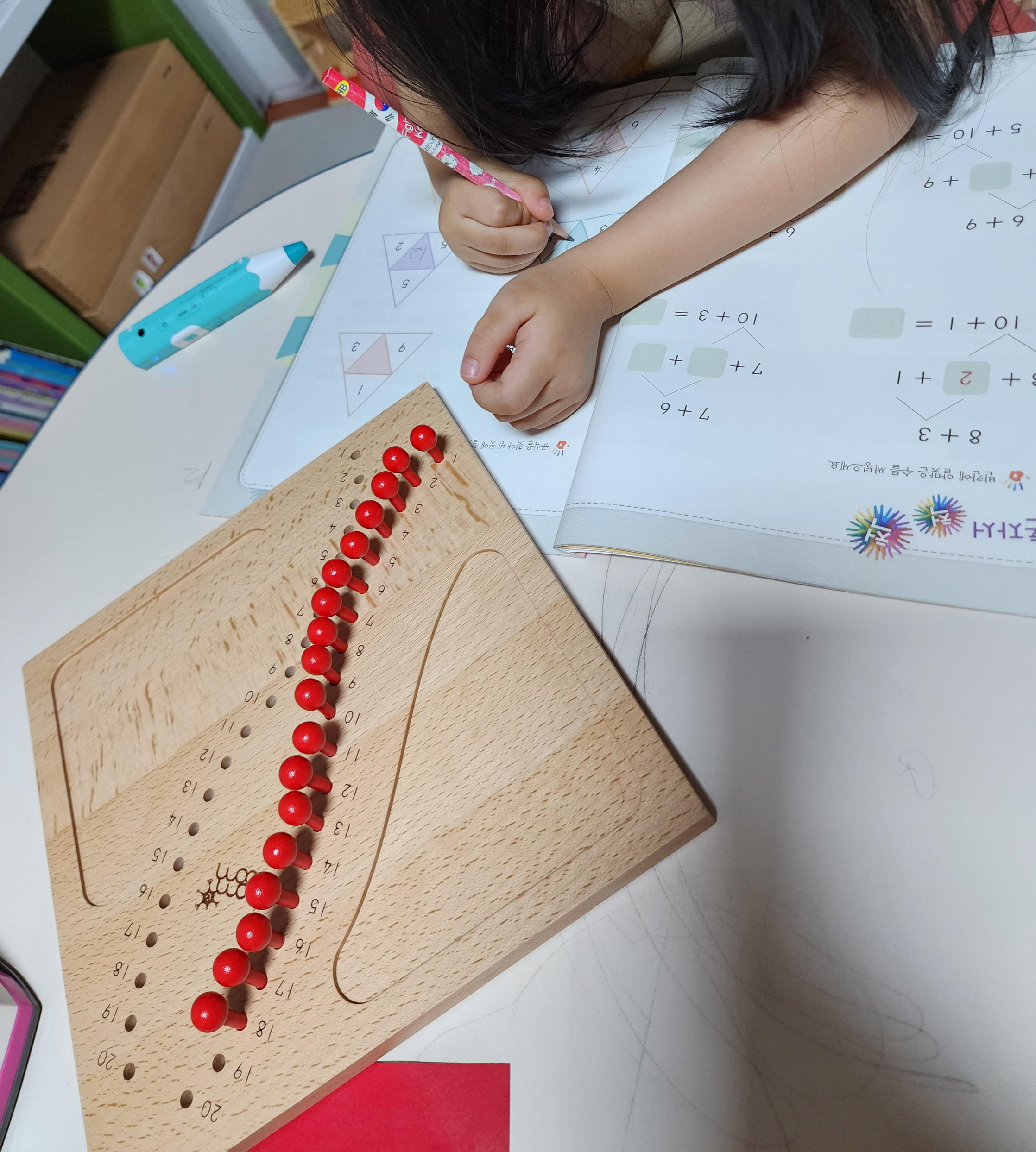 그러고는 하나씩 연필로 가리키며 셌는데 뭔가 세기 불편한 모습을 보였다.