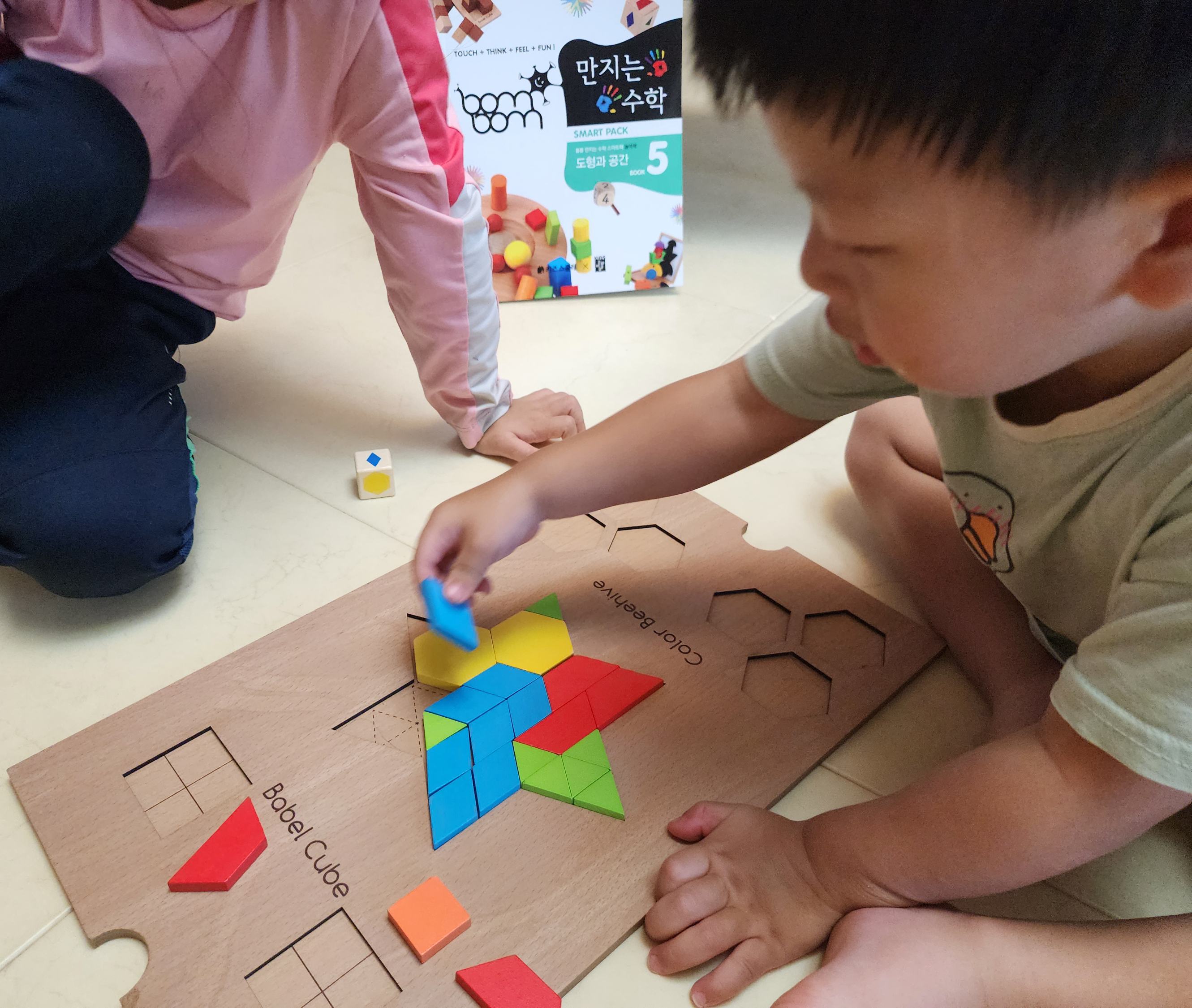 주사위를 돌려서 블록을 찾아 어디에 놓아야 좋을까 생각하는 놀이지만,