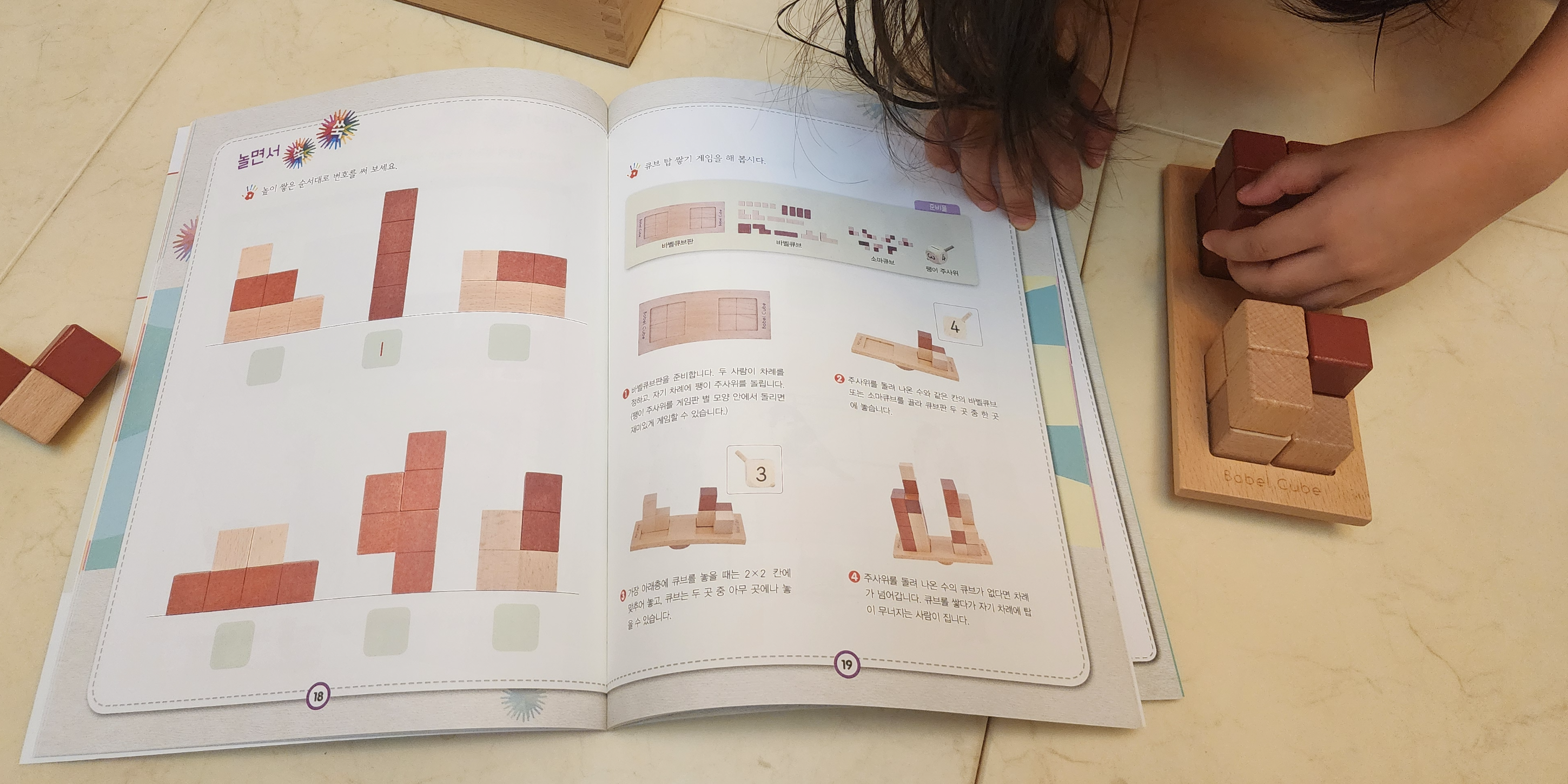 주사위를 굴려서 나온 수의 큐브를 바벨큐브판 2*2에 맞춰서 올리고 탑이 무너지는 사람이 지는 게임이다.