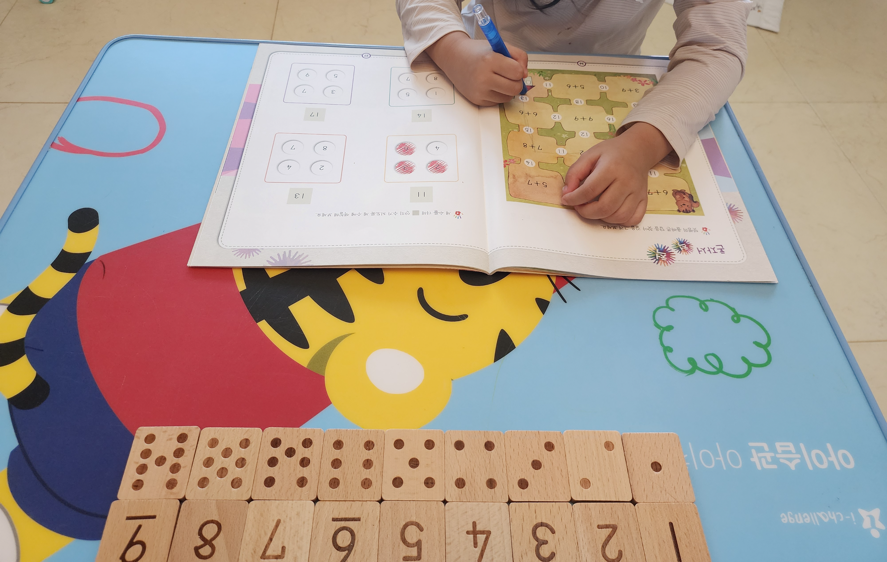 나와있는 숫자를 더해볼까 했지만 어려워하고 흥미가 확 떨어진 게 보여서 오늘은 이만!