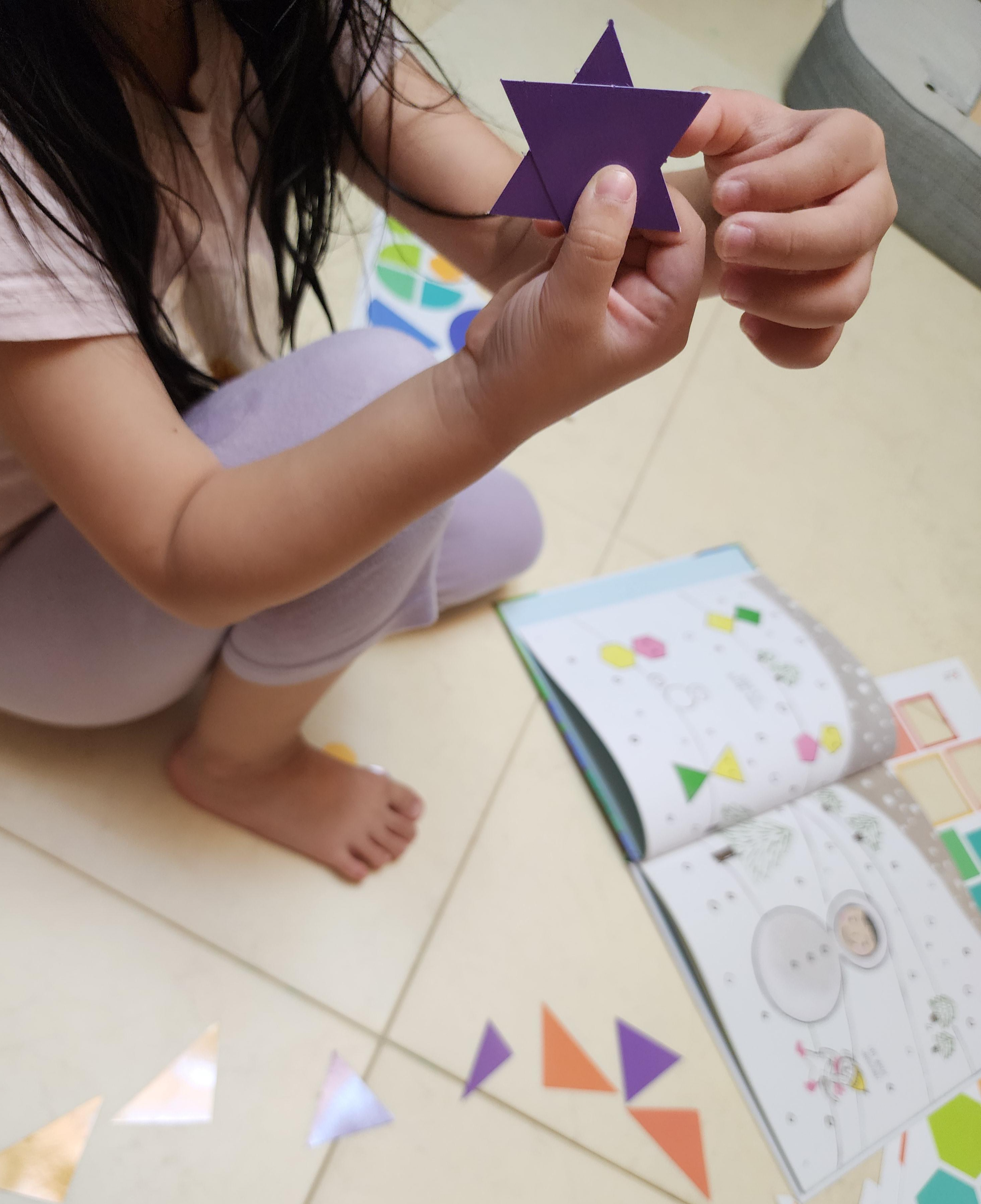 세모로 별을 만들고 뿌듯해 한다.