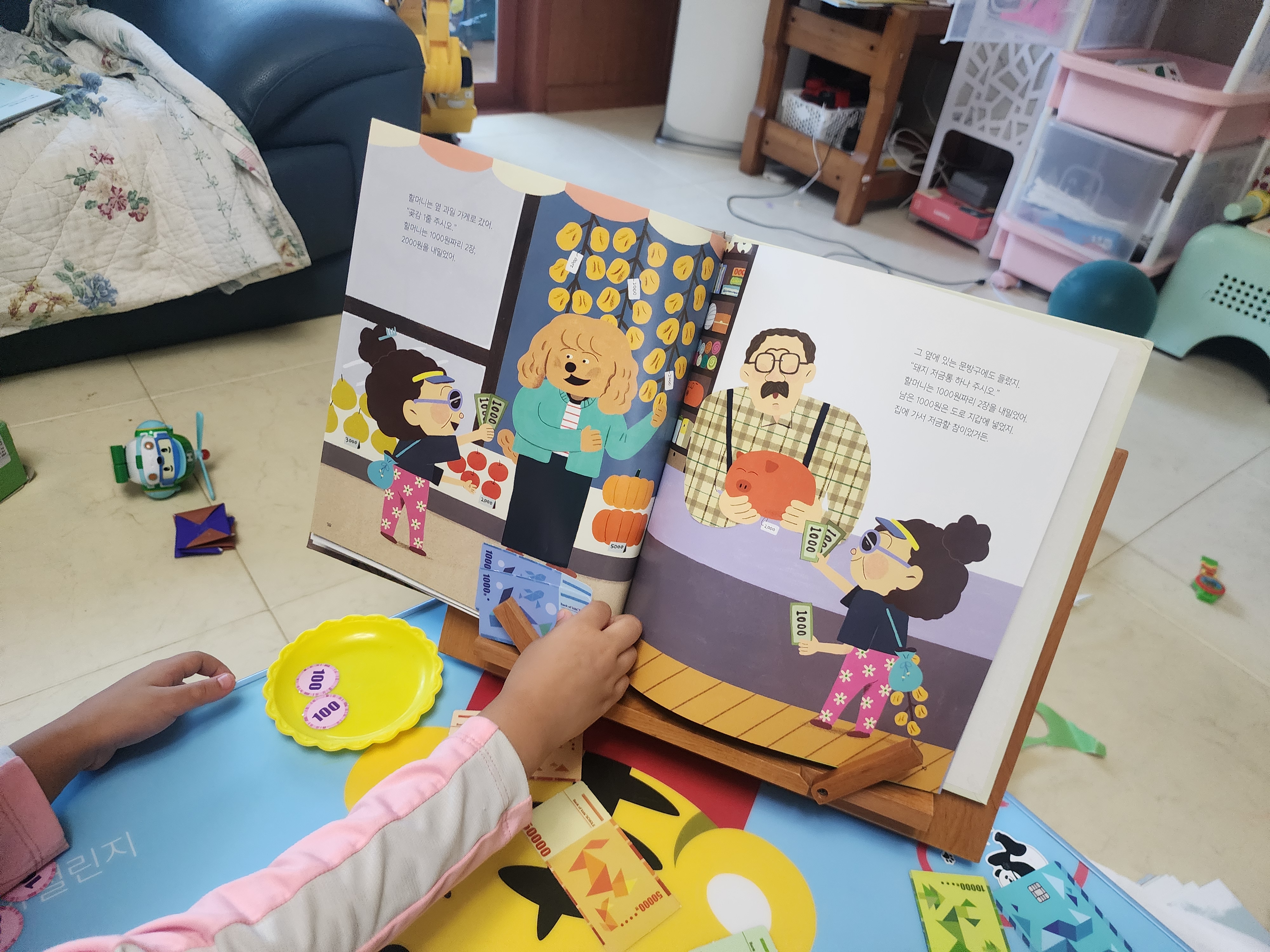 돈은 보통 100 단위부터 나오기 때문에 아이가 좀 헷갈려하는 부분이 있다.