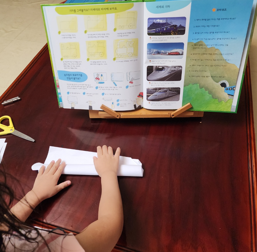 책을 재미있게 보고 맨 뒷페이지에 기차 호루라기를 만드는 방법이 있다.