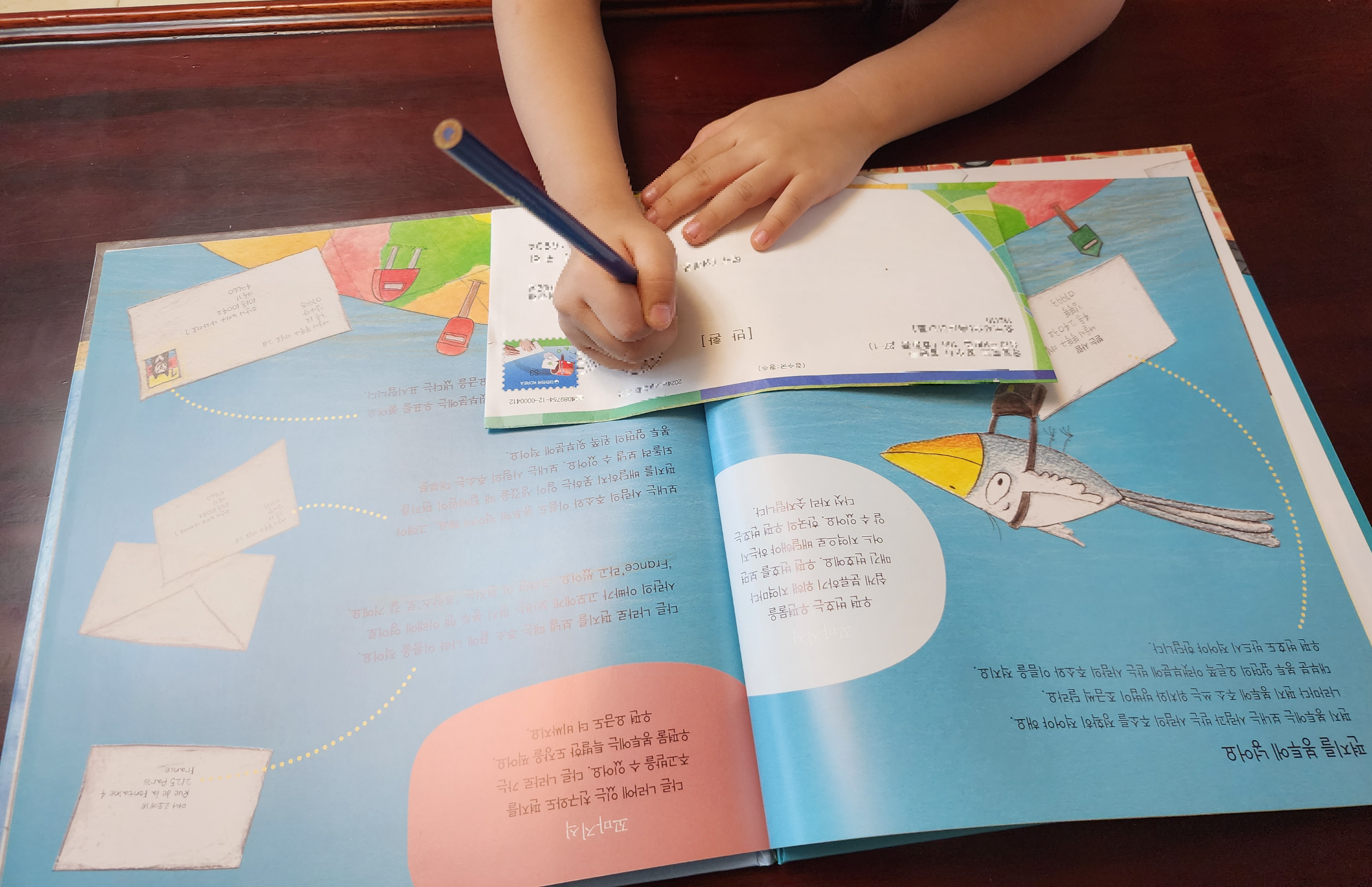 아이가 엄마한테 편지를 쓰다는 상황을 만들고, 위에 아이의 이름과 우편번호를 써보게 했다.