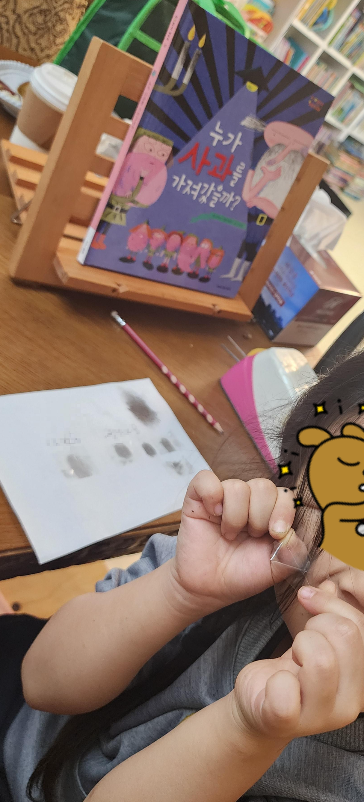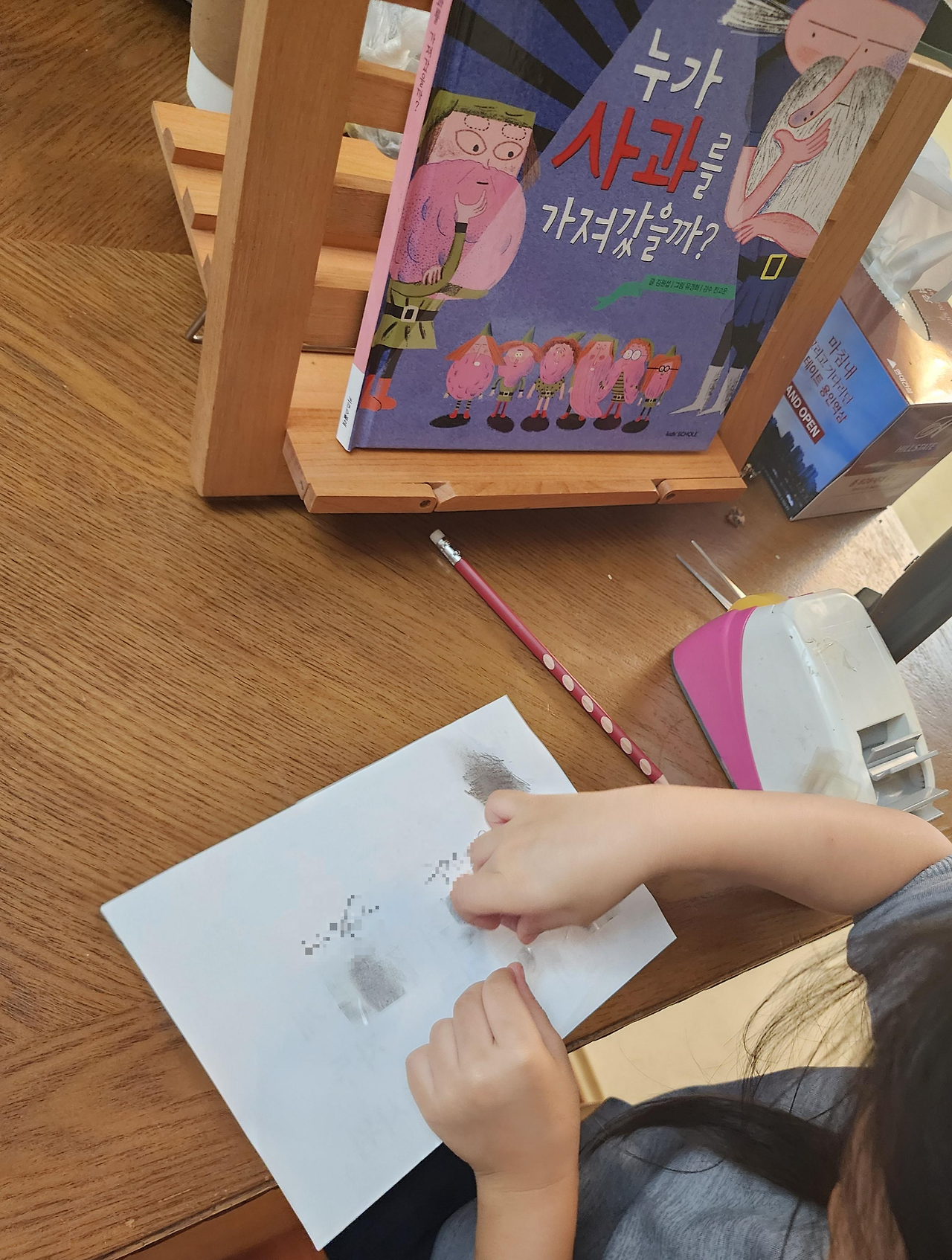 책을 읽고 난 후, 첫째아이가 유치원에서 지문 찍기 놀이를 했다고 말했다.