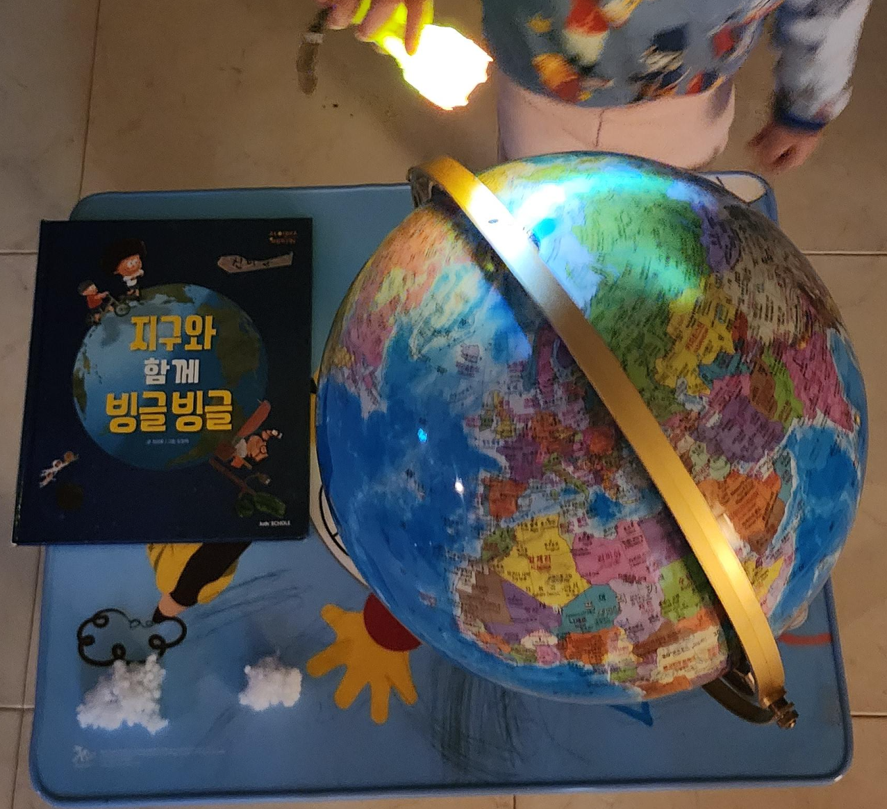 지구본을 꺼내니 알아서 공전도 설명해 주는 고마운 모습을 보여준다.