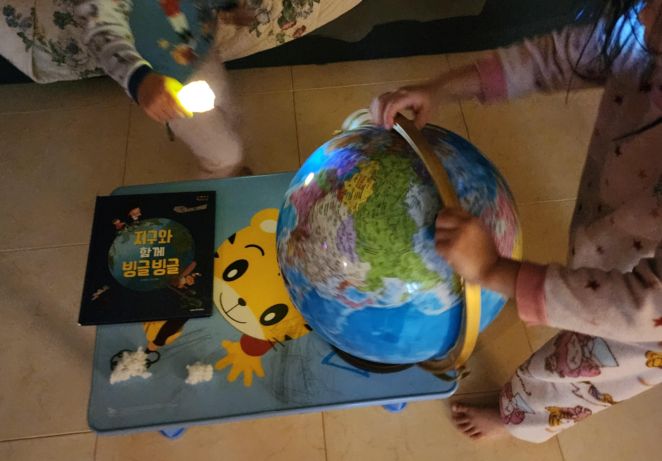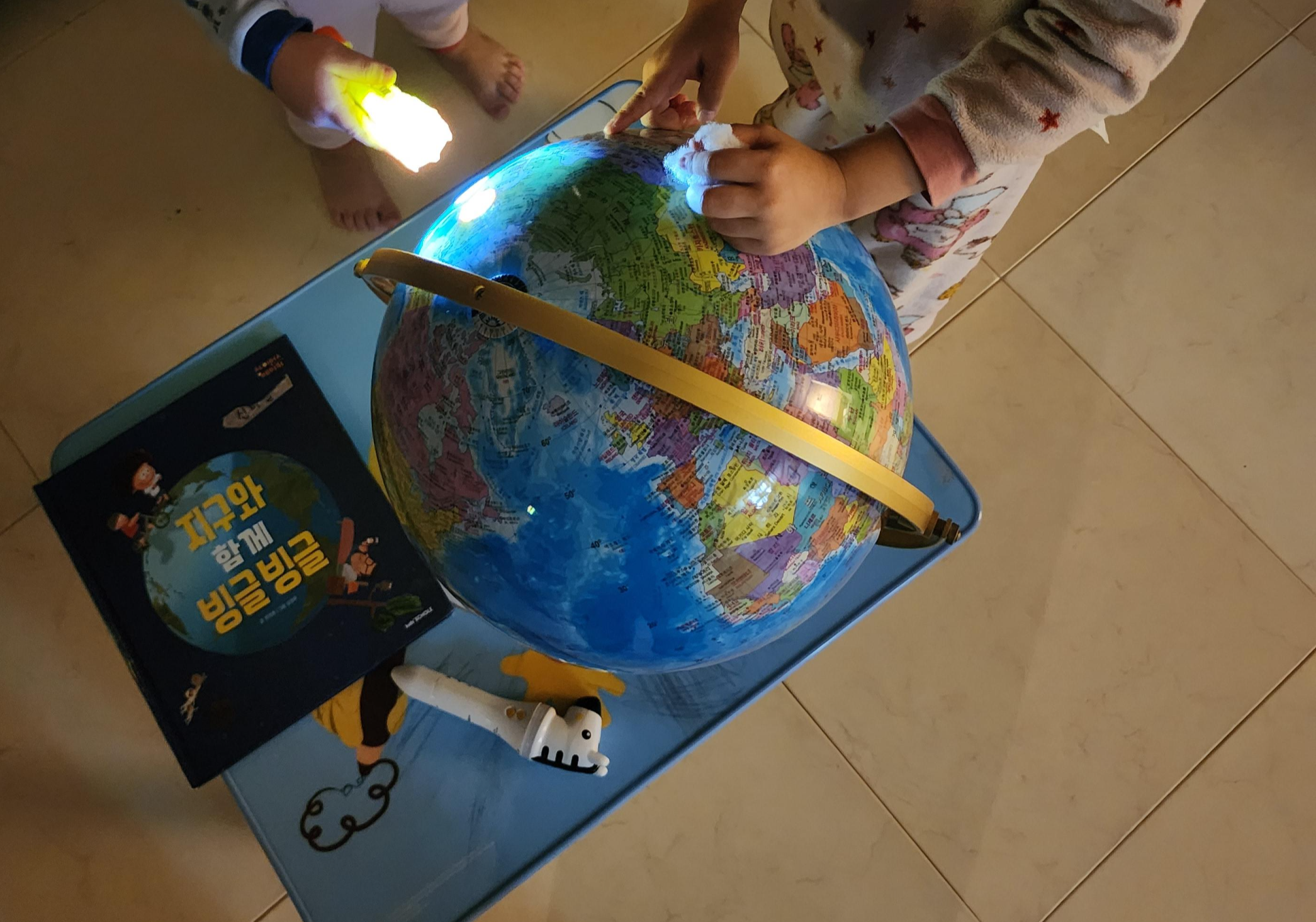우리나라도 찾아보고, 이제는 둘째에게 받은 플래시로 첫째도 활동을 한다.