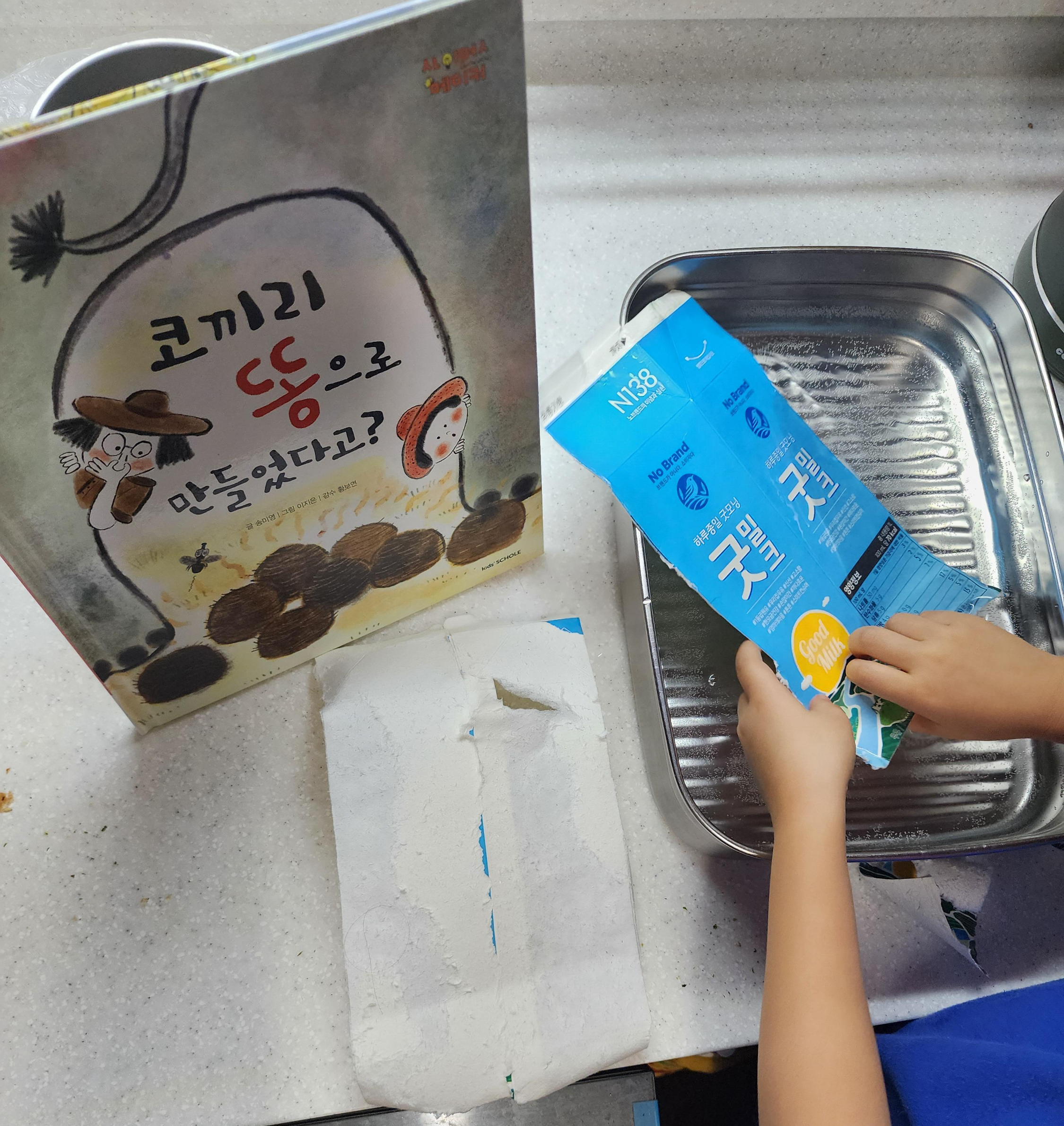 우유팩을 하루정도 물에 불리고 겉면의 코팅을 벗겨낸다.