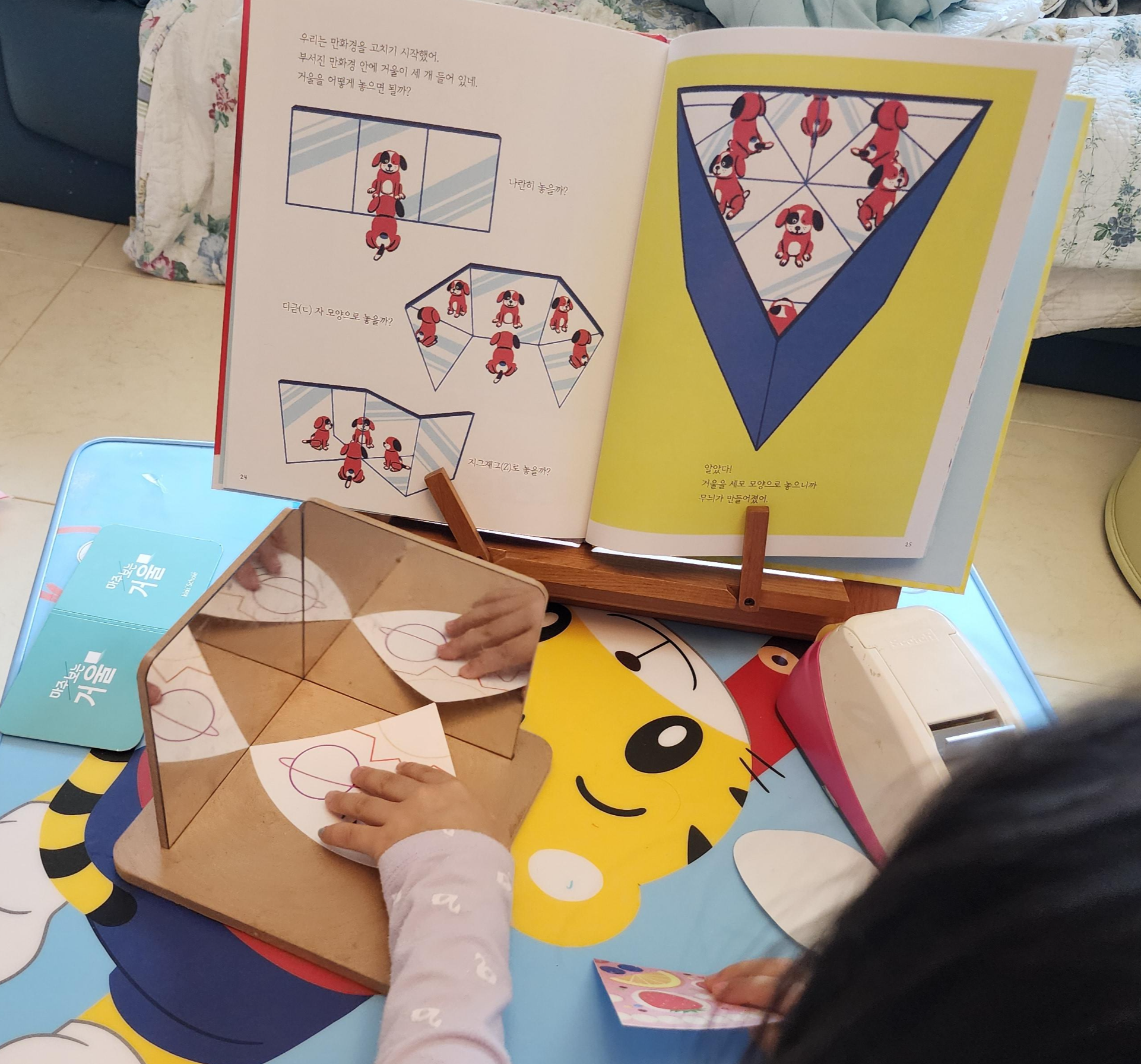 거울의 원리를 설명해 주며 신기한 모습이 나타는 것을 알려주는 열려라 거울나라!